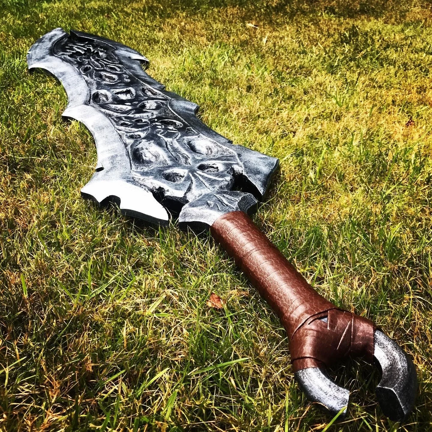 The build is copied straight from screenshots of the video game. Painstakingly hand carved and painted, this life size prop weapon is perfect for cosplay or to just hang on a wall and make all of your friends jealous. It is a substantial build and looks great.