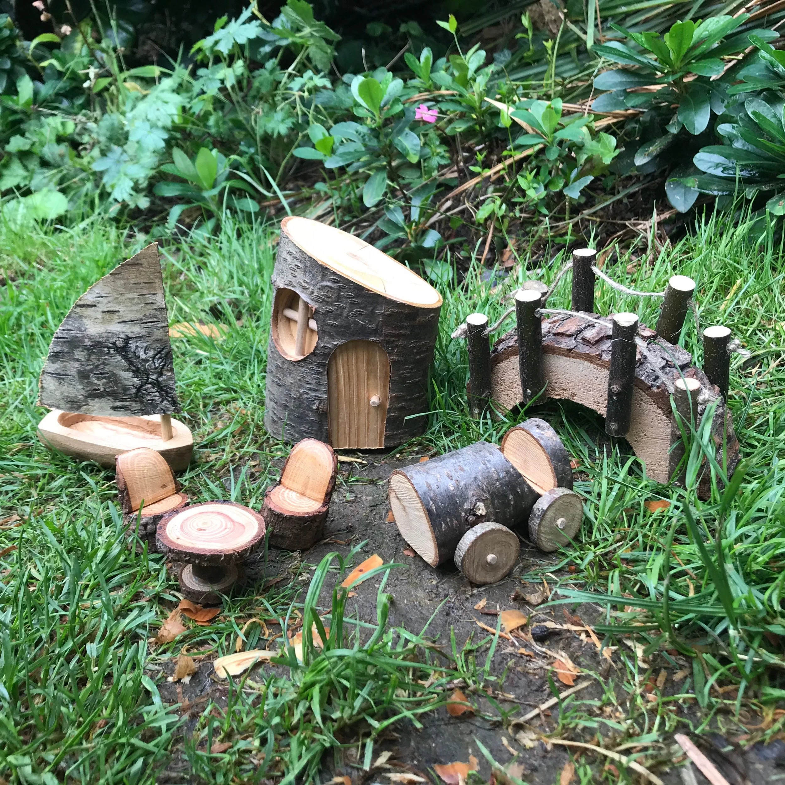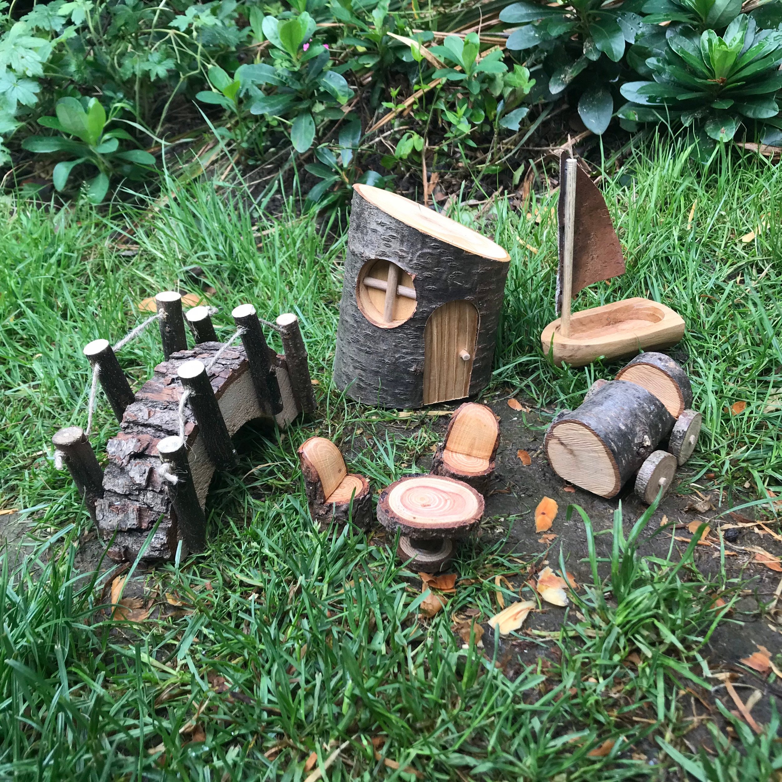 1x Elf / Fairy log house 1x Elf / Fairy car 1x Elf / Fairy boat 1x Elf / Fairy bridge 1x Elf / Fairy Table and chairs set