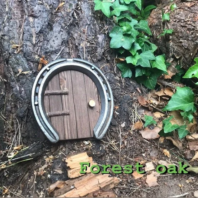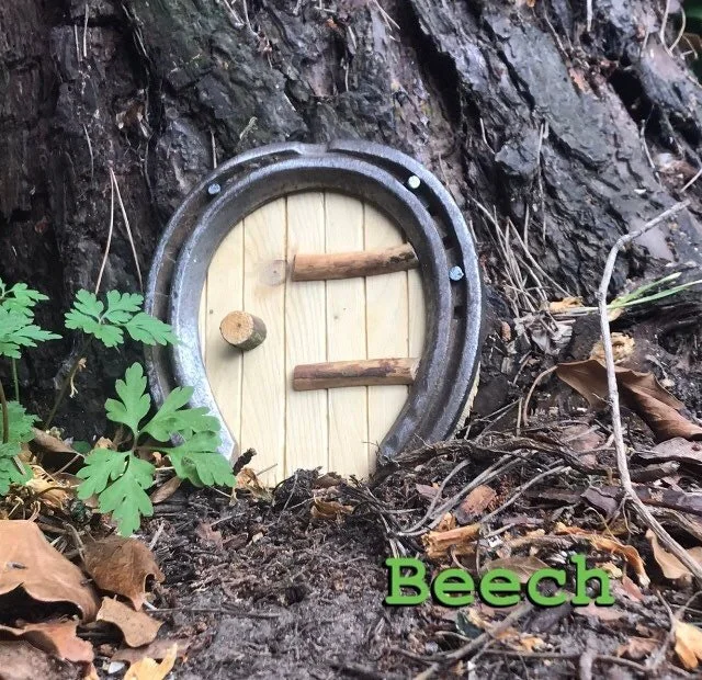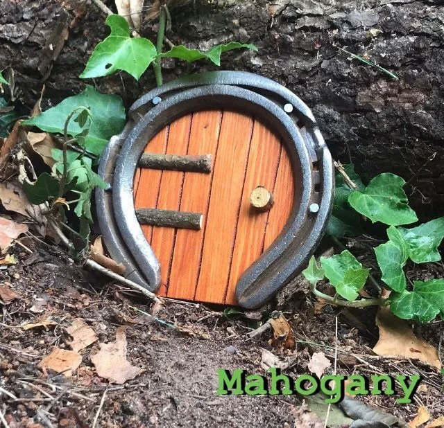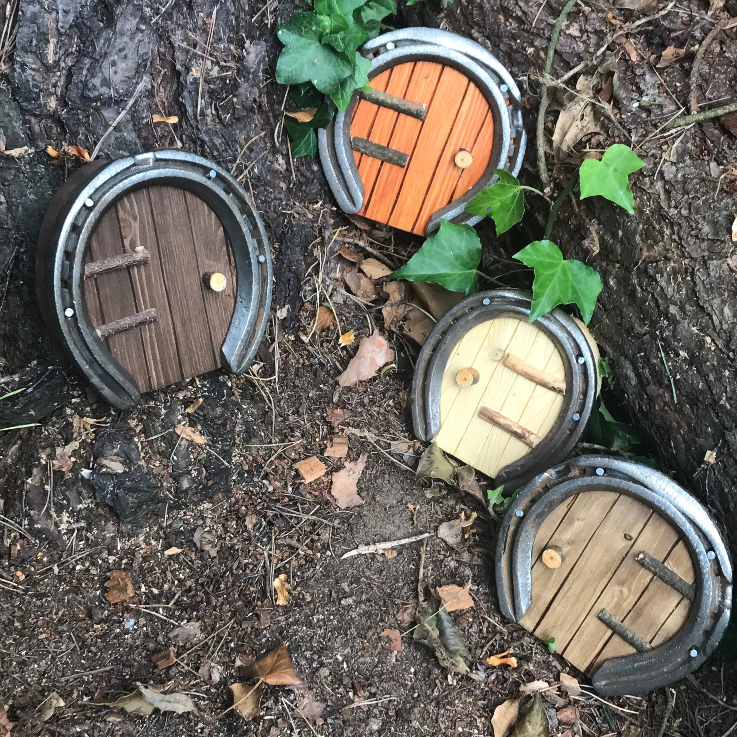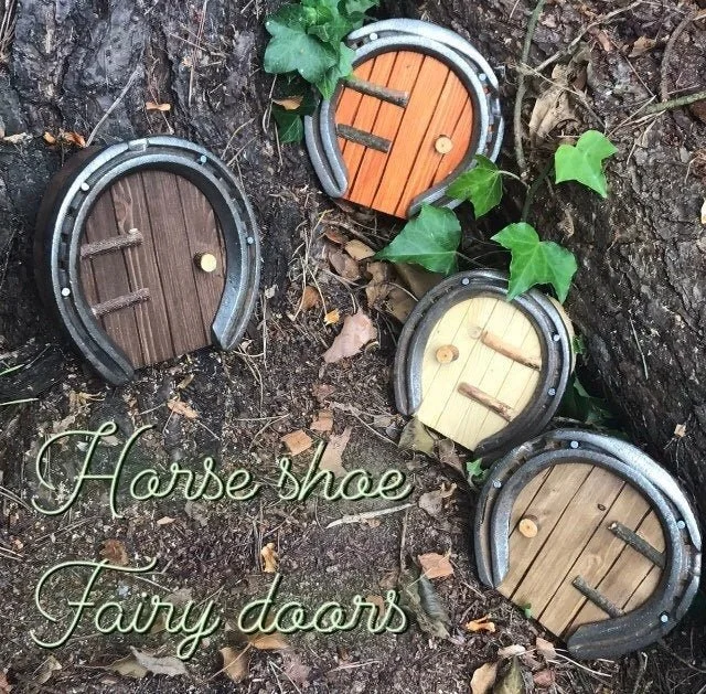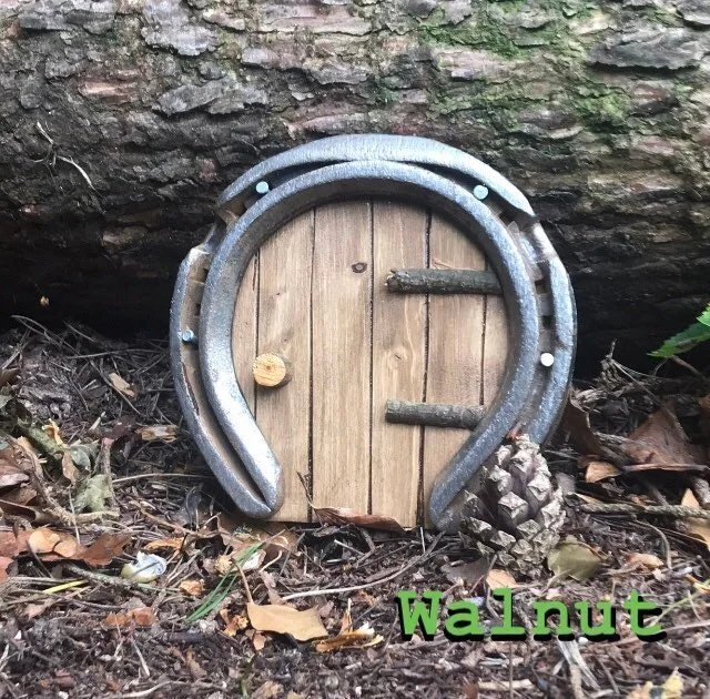 All fairy doors are handmade from real wood and use real recycled horse shoes. The doors are varnished and stained with various colours of stain.
