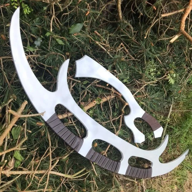 Fan made wooden full size replica recreation inspired by the Klingon Bat’leth and Mek’leth from the Star Trek TV shows and Movies.
