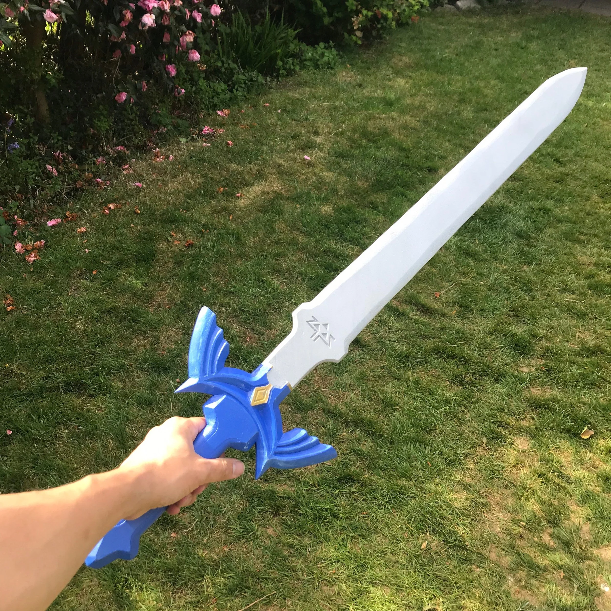 Master Sword: This is the standard blue handled sword as seen in the listing pictures finished with a Blue faux leather wrap on the handle. The Sword will be made and sent to you in two to three weeks.