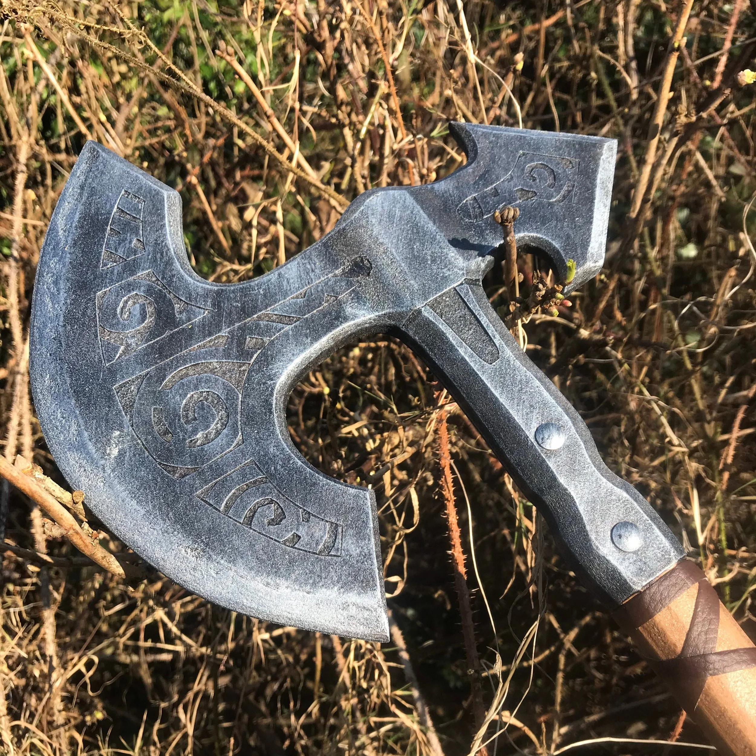 One handed Nordic style axe inspired by Skyrim wooden cosplay replica