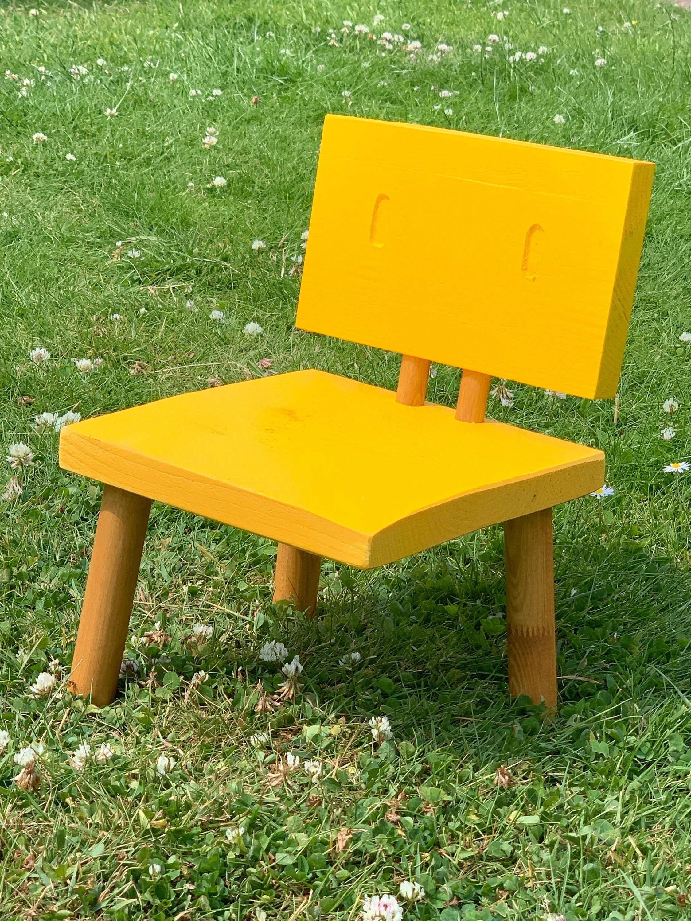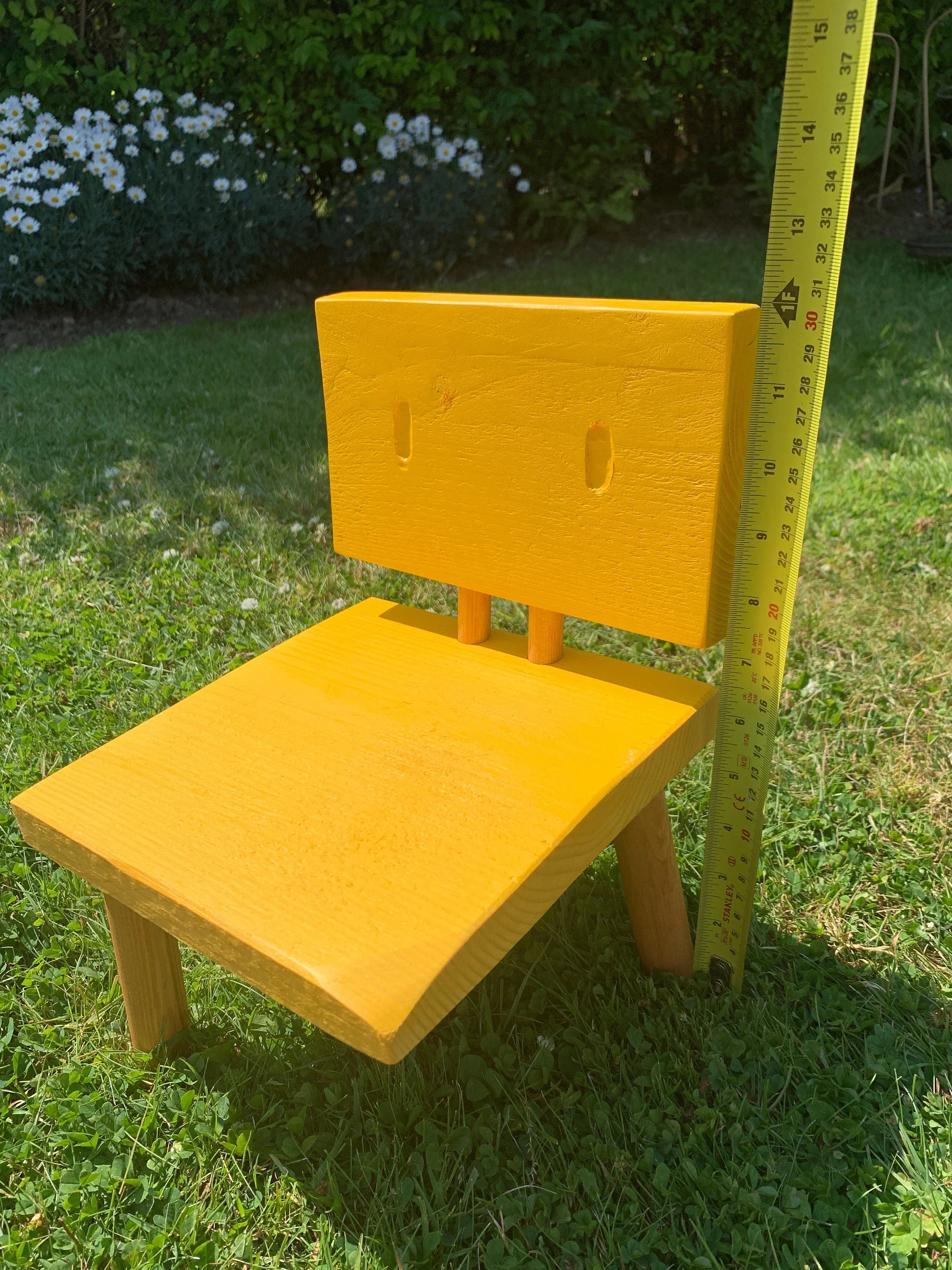 Wooden 30cm three legged ‘chair/stool’ inspired by Souta from the Suzume animated movie full size fan build for cosplay. not for sitting