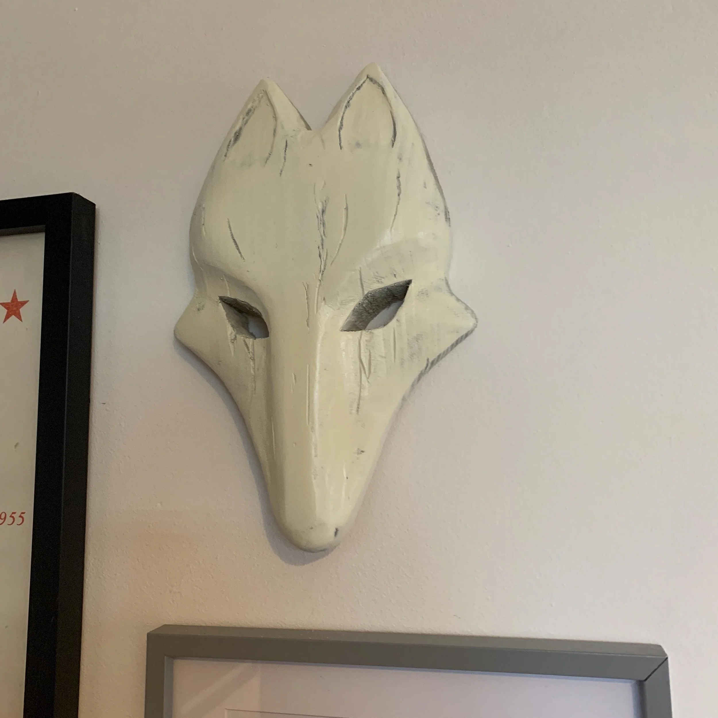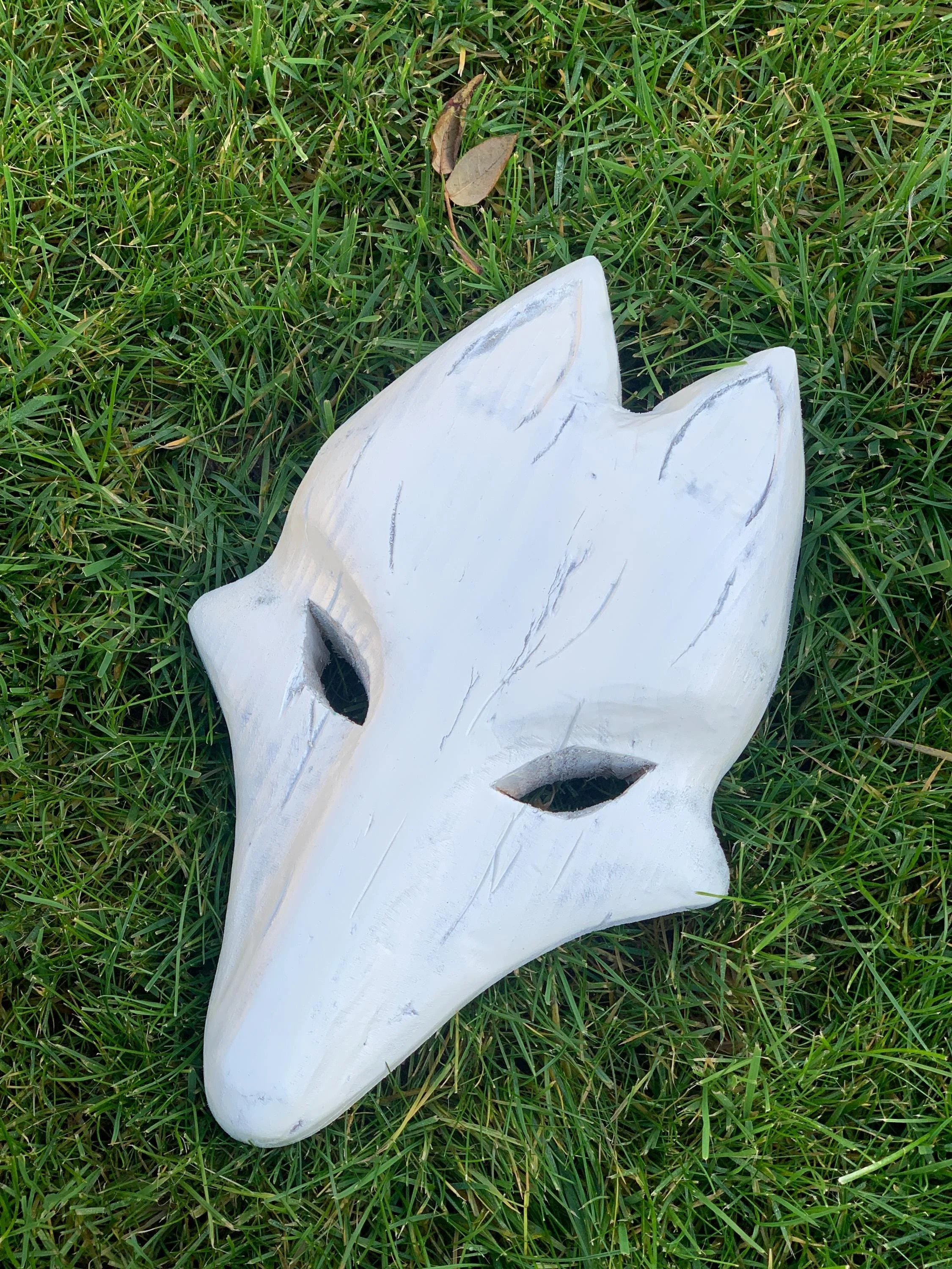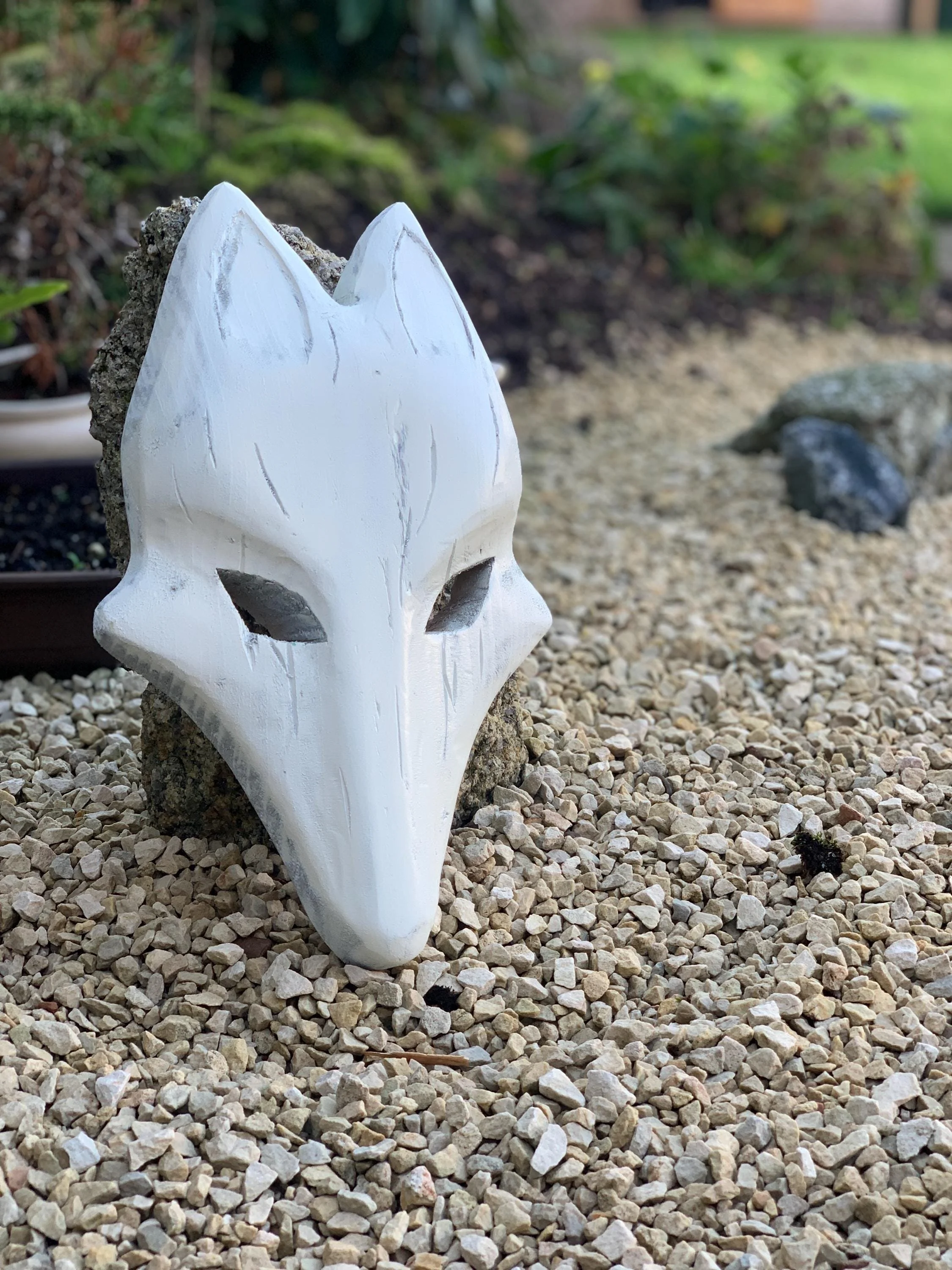 Wooden ‘Kitsune mask’. Wooden full size replica. Unofficial game inspired DISPLAY only Not wearable